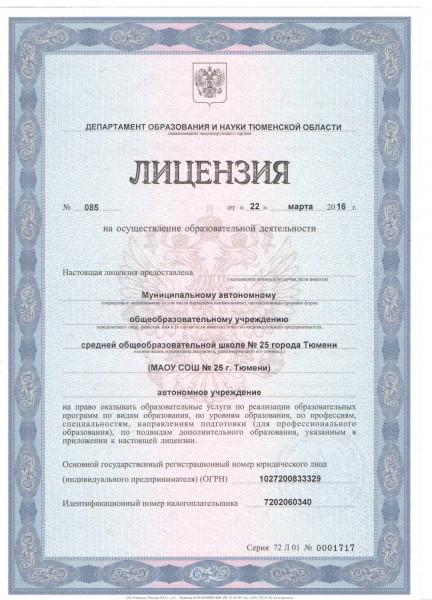 | Полное наименование образовательной организации* | Муниципальное автономное общеобразовательное учреждение средняя общеобразовательная школа №25 города Тюмени |